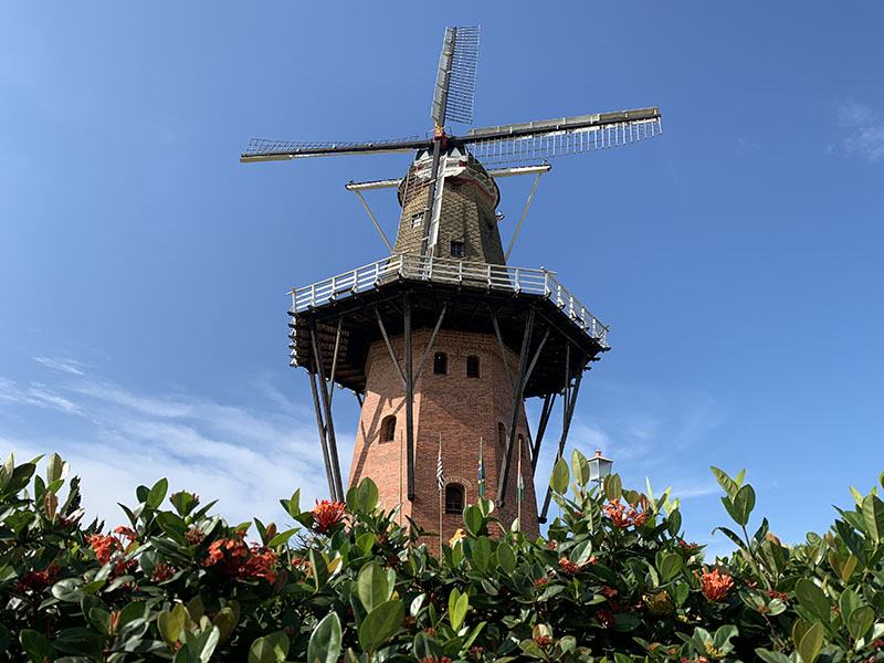 Um dos pontos turísticos mais visitados é o Moinho Povos Unidos, ele foi inaugurado em 2008 para comemorar os 60 anos da imigração Holandesa no Brasil. Nossa guia informou que ele foi projetado por um arquiteto holandês e segue uma cópia fiel dos tradicionais e famosos moinhos holandeses.